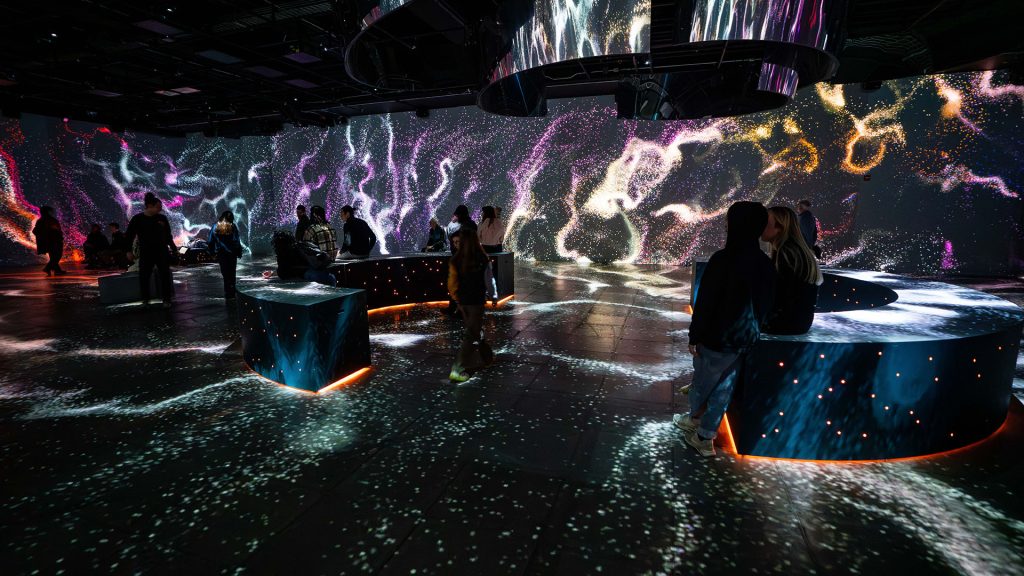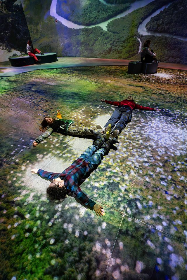 We had the opportunity to collaborate on the immersive exhibition « Root for Nature », inspired by the historic agreements of COP15. It’s a magnificent show that pays tribute to the fauna, flora, and overall richness of our planet, featuring immersive digital art at its finest, thematic scenography, as well as informative and educational areas. The mandate for couleur.tv was to spatialize, deploy, and expand the content of the main hall, which is the third gallery. It was a meticulous video processing task that required the use of all our computers for these renders of nearly 74 million pixels!